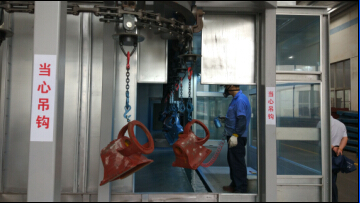 一,油漆車間 經(jīng)過(guò)3個(gè)月的努力,油漆車間終于完成了年初規(guī)劃的改造工作。工程包括:半自動(dòng)噴漆線(含4.5m³空壓機(jī)機(jī)組),φ1米×0.7米噴砂機(jī),2.6米×1.1米浸漆池,另配套安裝了0.5噸自立式起重機(jī),1噸懸臂起重機(jī),2.8噸單梁起重機(jī),總投入約200萬(wàn)元。 其中噴漆線設(shè)備整齊、美觀、實(shí)用,噴漆時(shí)通過(guò)清理除塵去毛刺→噴漆→流平→再噴漆→再流平→烤爐烘烤→強(qiáng)制冷卻等多道工序,徹底解決以前油漆質(zhì)量不穩(wěn)定的問(wèn)題。 噴砂機(jī)徹底解決了以前鑄件表面鐵銹和鑄造砂無(wú)法去除干凈的問(wèn)題。噴砂好的零件直接浸漆處理,不僅效率高,防銹漆比原手工涂漆薄,均勻,美觀。 以上多套設(shè)備投入使用后明顯提高了生產(chǎn)效率和改善了油漆車間工人的工作環(huán)境。