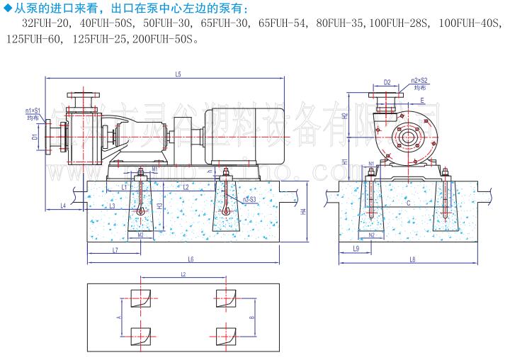 一、概述 FUH系列工程塑料泵是原化工部引進項目和"七五"國家重大科技成果,是在消化吸收引進設備的基礎上,結合國內耐腐蝕離心泵結構的優(yōu)點精心設計而成,該系列泵1993年列入國家"火炬計劃"項目,獲1995年度新產品獎。 二、用途 FUH系列泵主要應用于各類酸、堿、鹽、油類、食品飲料、酒類等液體。具體應用于化工行業(yè)的各種硫酸、鹽酸、堿類、油類等清液或料漿崗位;有色冶煉行業(yè)特別是鉛、鋅、金、銀、銅、鈷、鎢、稀土等濕法冶煉中的各種酸液、礦漿、料漿(壓濾機配用)、電解液、污水等介質;化肥行業(yè)中稀酸(酸洗工藝用)、母液、氫氟酸、氟硅酸、海水及磷酸料漿等介質;水處理、環(huán)保行業(yè)中的各類污水(食品污水、電鍍污水、皮革污水、制藥污水、造紙污水、紡織污水、電子污水等)及脫硫除塵;鋼鐵業(yè)酸洗系統(tǒng)的硫酸、鹽酸崗位;鈦白粉行業(yè)中的酸解、沉降、冷凍、水解、水洗、鹽處理;化纖行業(yè)的酸站;檸檬酸的發(fā)酵、中和、壓濾、廢水等崗位以及黑色金屬錳業(yè)等。此外,該系列泵不僅可以替代以上行業(yè)中的國內同類金屬與非金屬產品,也是進口設備國產化的優(yōu)選產品。 三、型號說明